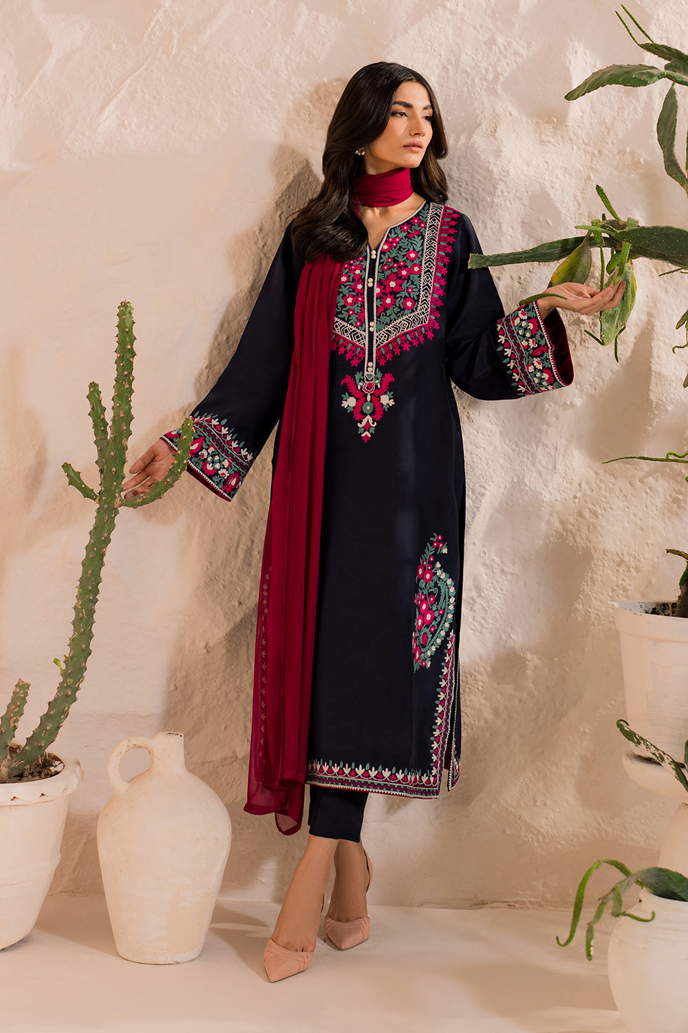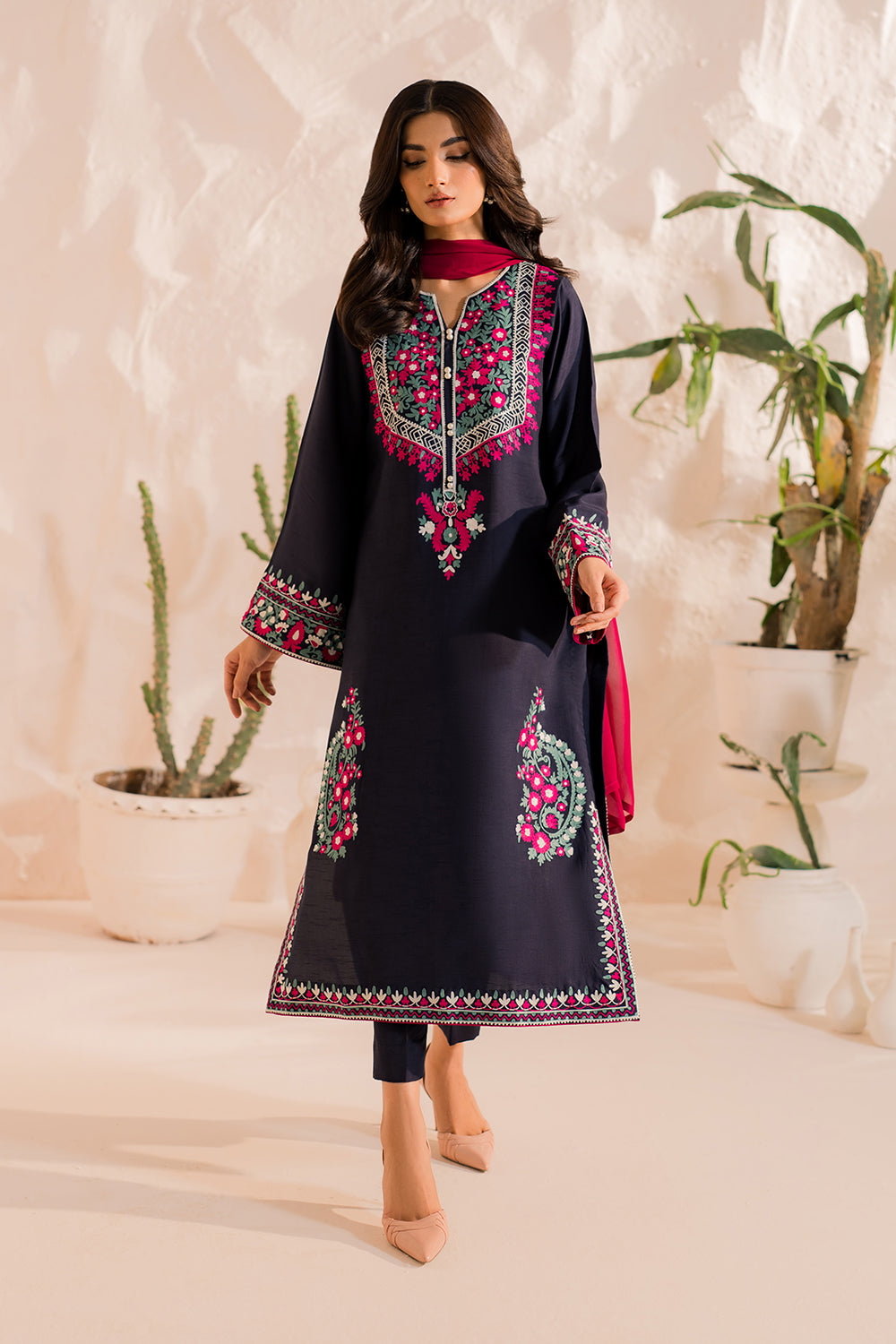 #MidnightGrace #EasternWear #FormalStyle #NavyBlueVibes #CottonChic #ElegantLooks